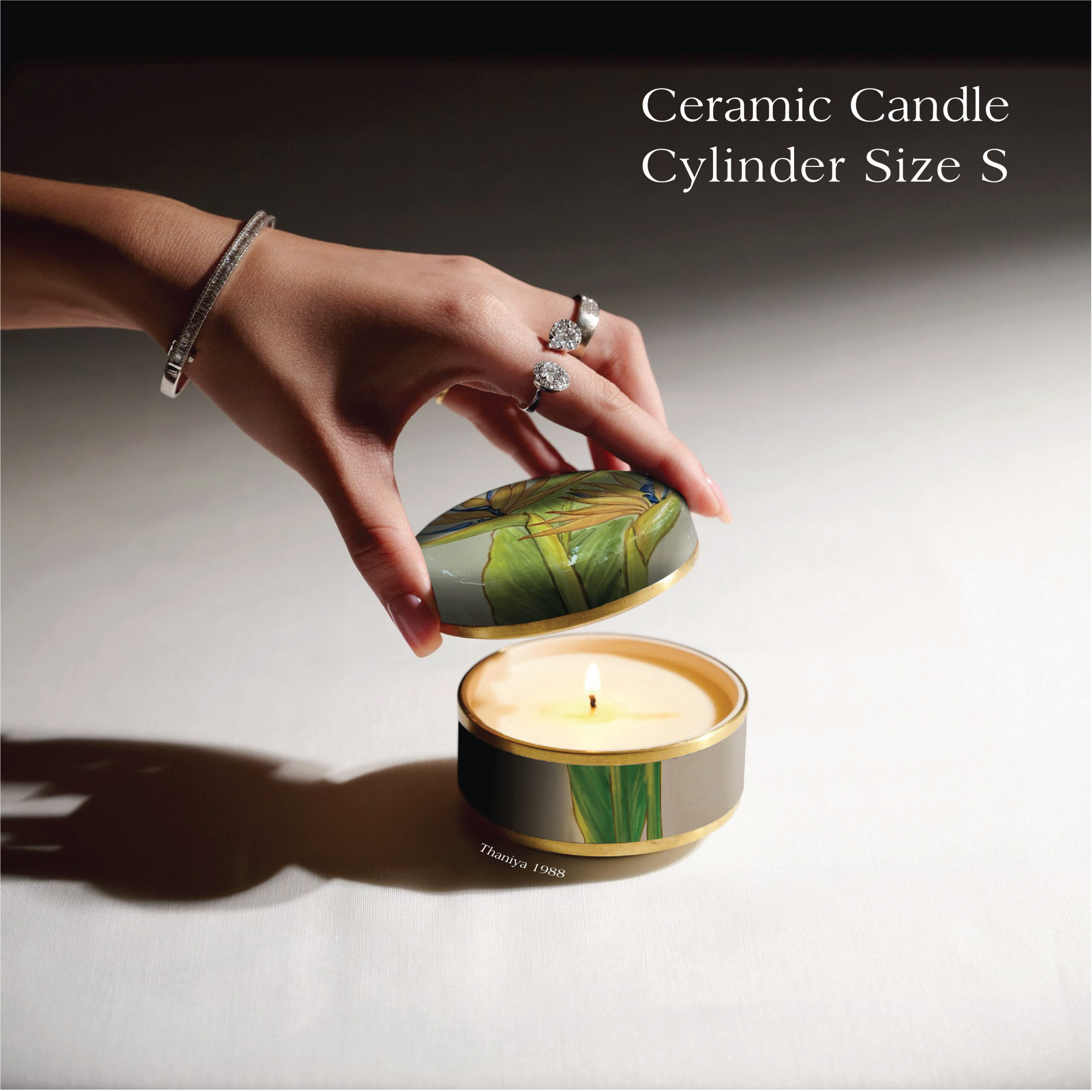 เทียนหอมในเซรามิกทรงตลับ ลายปักษาสวรรค์