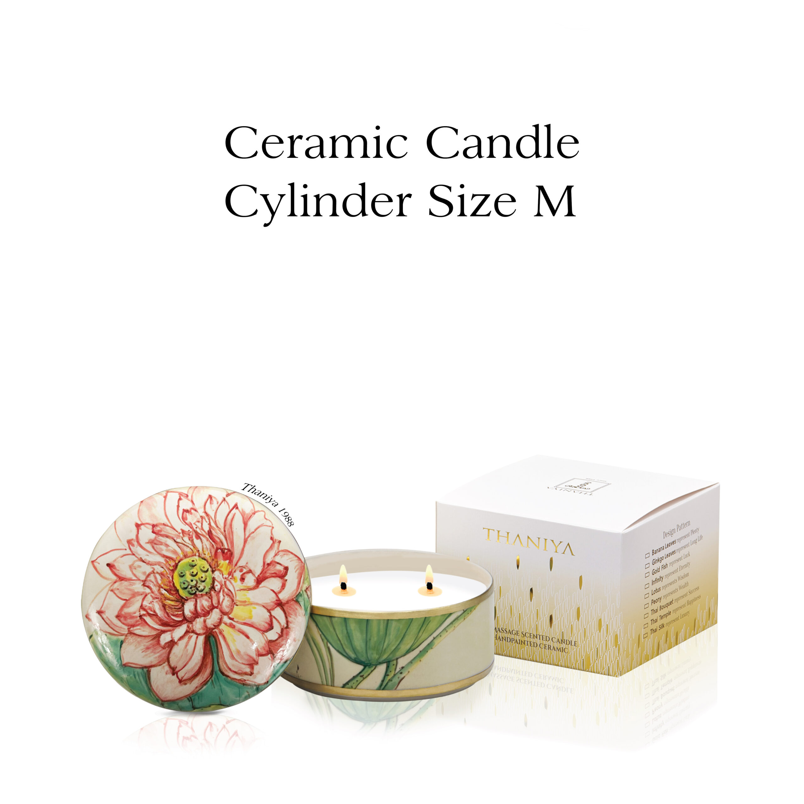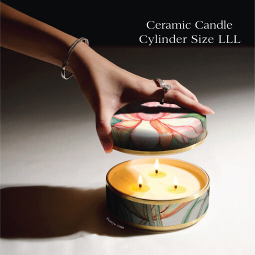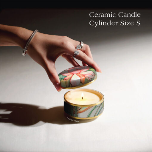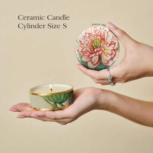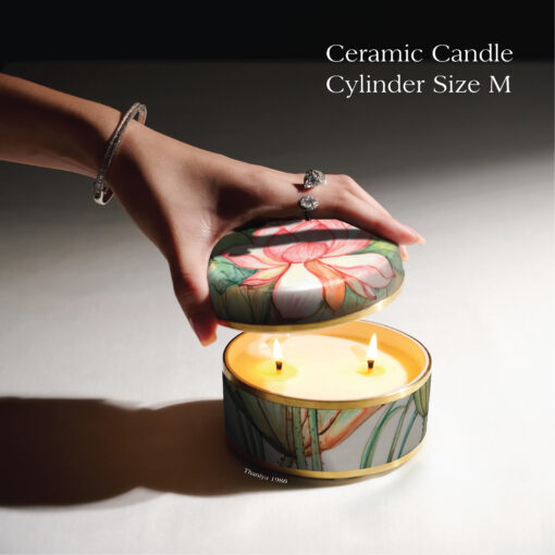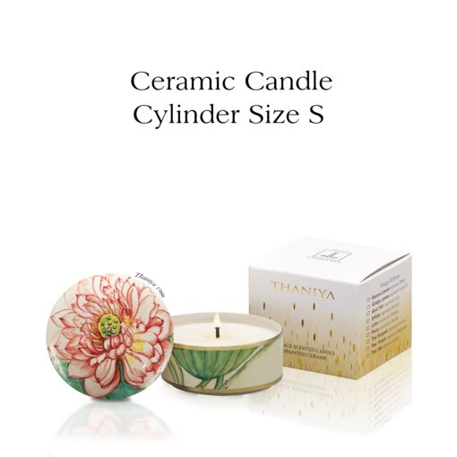 เทียนหอมในเซรามิกทรงตลับ ลายบัวหลวง