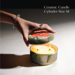 เทียนหอมในเซรามิกทรงตลับ ลายดอกโบตั๋น