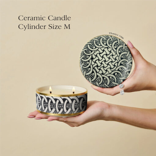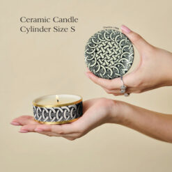 เทียนหอมในเซรามิกทรงตลับ ลายคล้องใจ