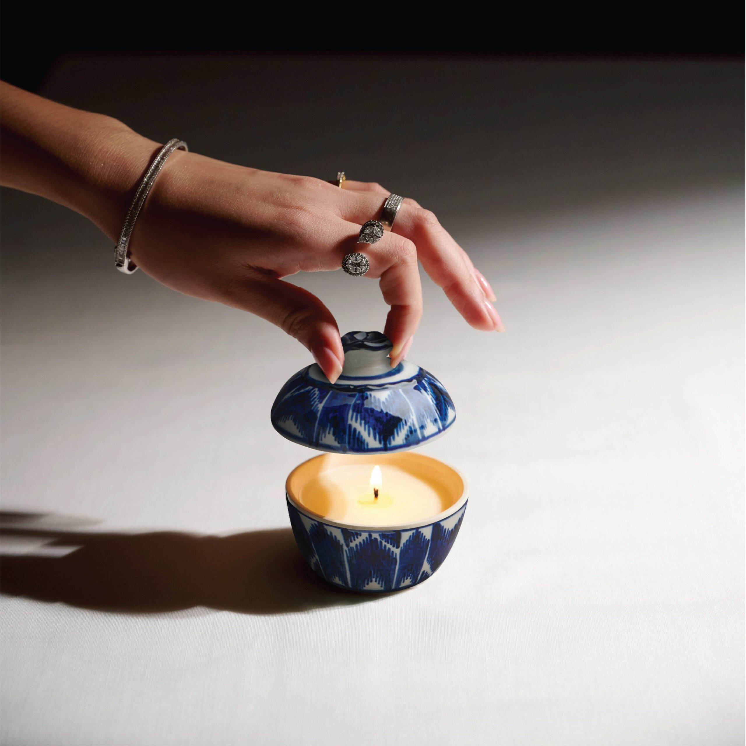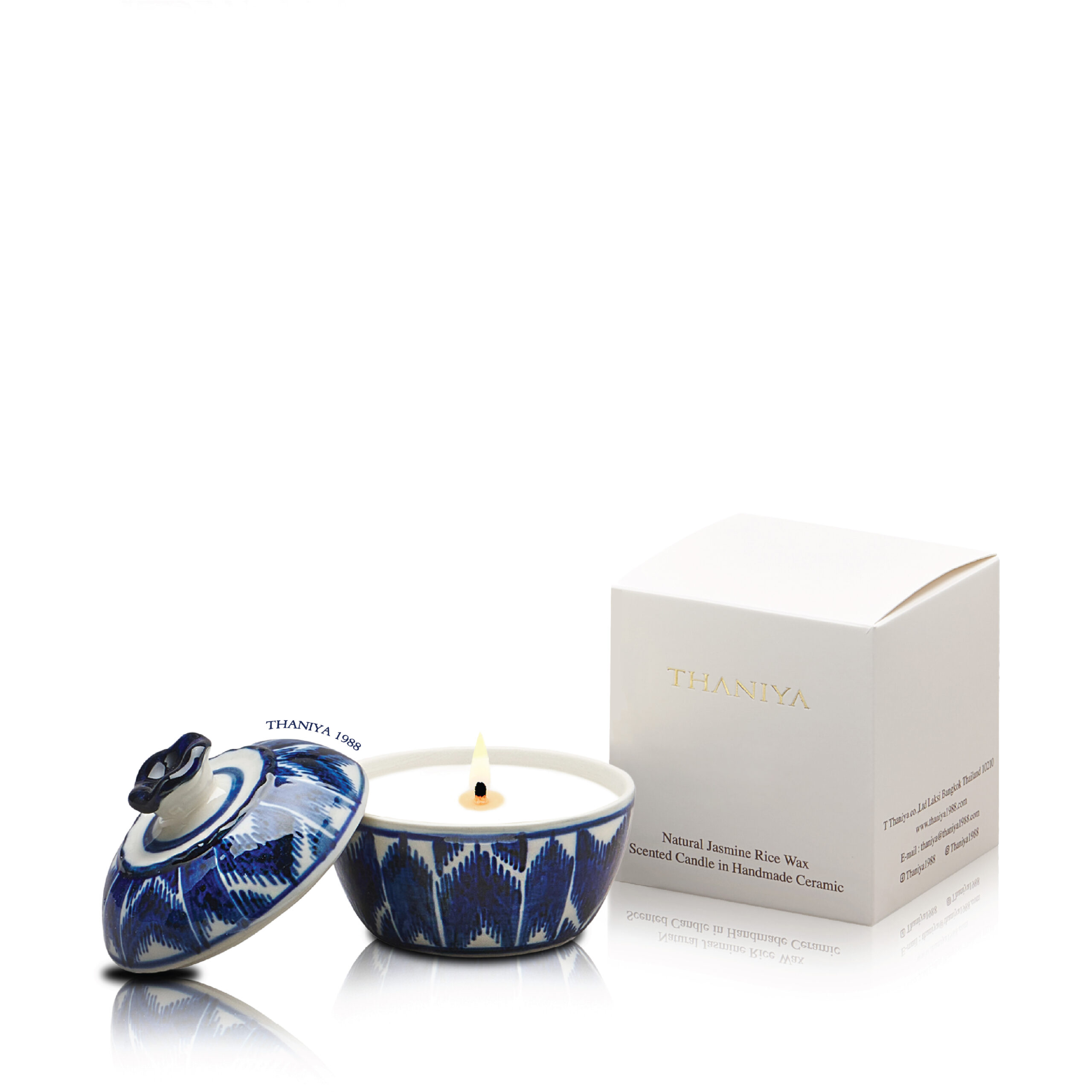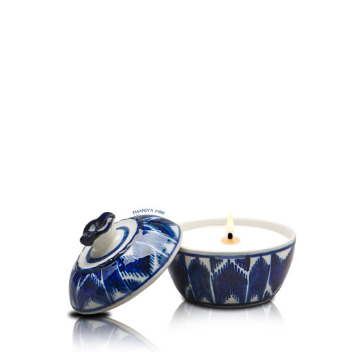 เทียนหอมในเซรามิกทรงคราม ลายมัดหมี่