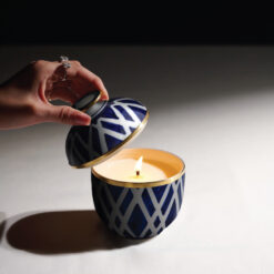 เทียนหอมในเซรามิกทรงถ้วย ลายผ้าขิด