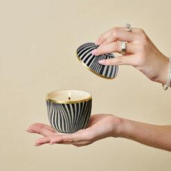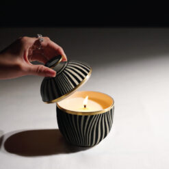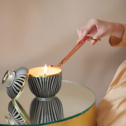 เทียนหอมจากข้าวหอมมะลิผสานกลิ่นหอมที่ทางเราเบลนด์มาพิเศษ จากดอกไม้และสมุนไพรไทย บรรจุในเครื่องเคลือบ เซรามิก ที่ผ่านการออกแบบ ในลวดลาย Modern Contemporary บรรจงวาด โดยช่างฝีมือชาวไทย ที่มีประสบการณ์ ยาวนานกว่า 30 ปี